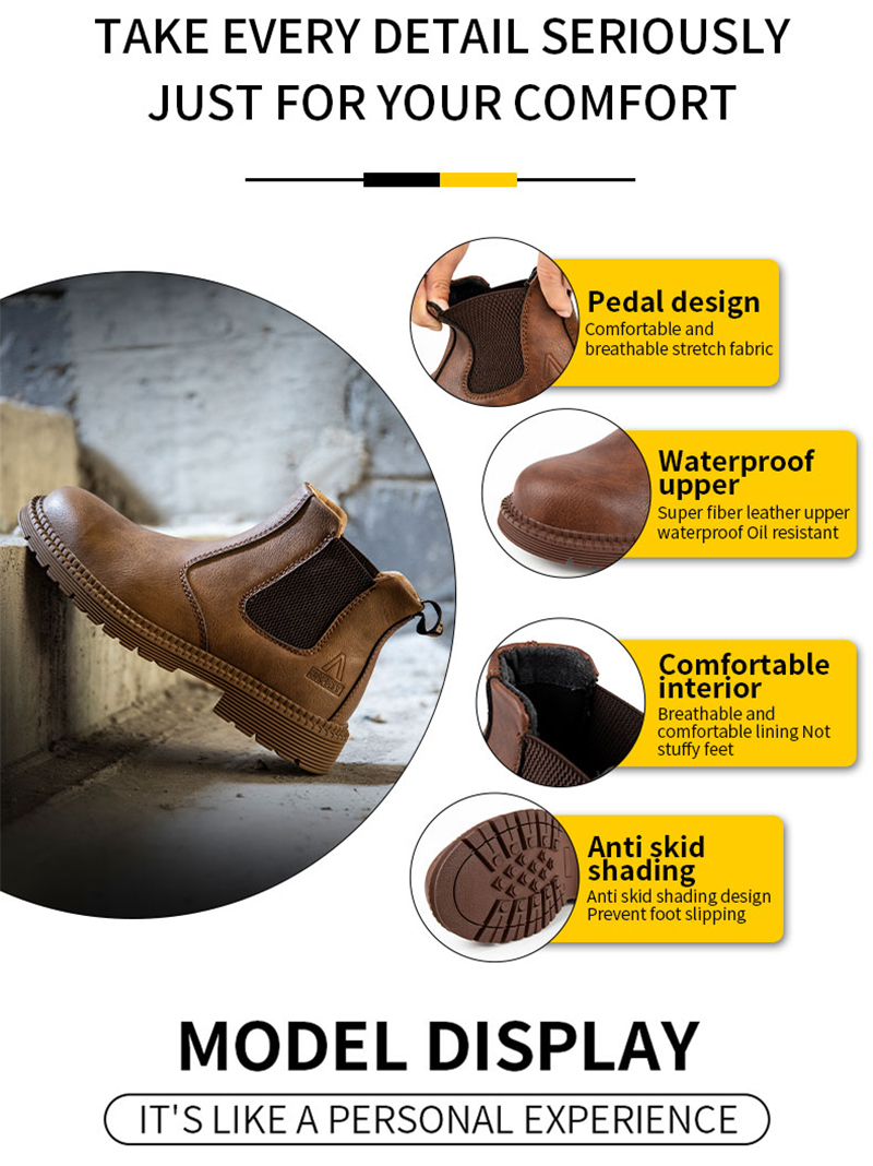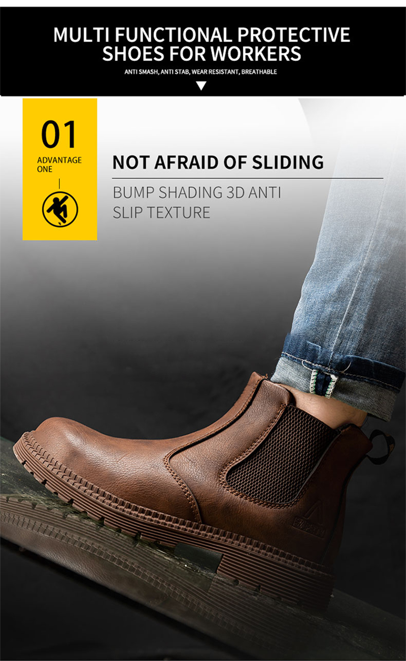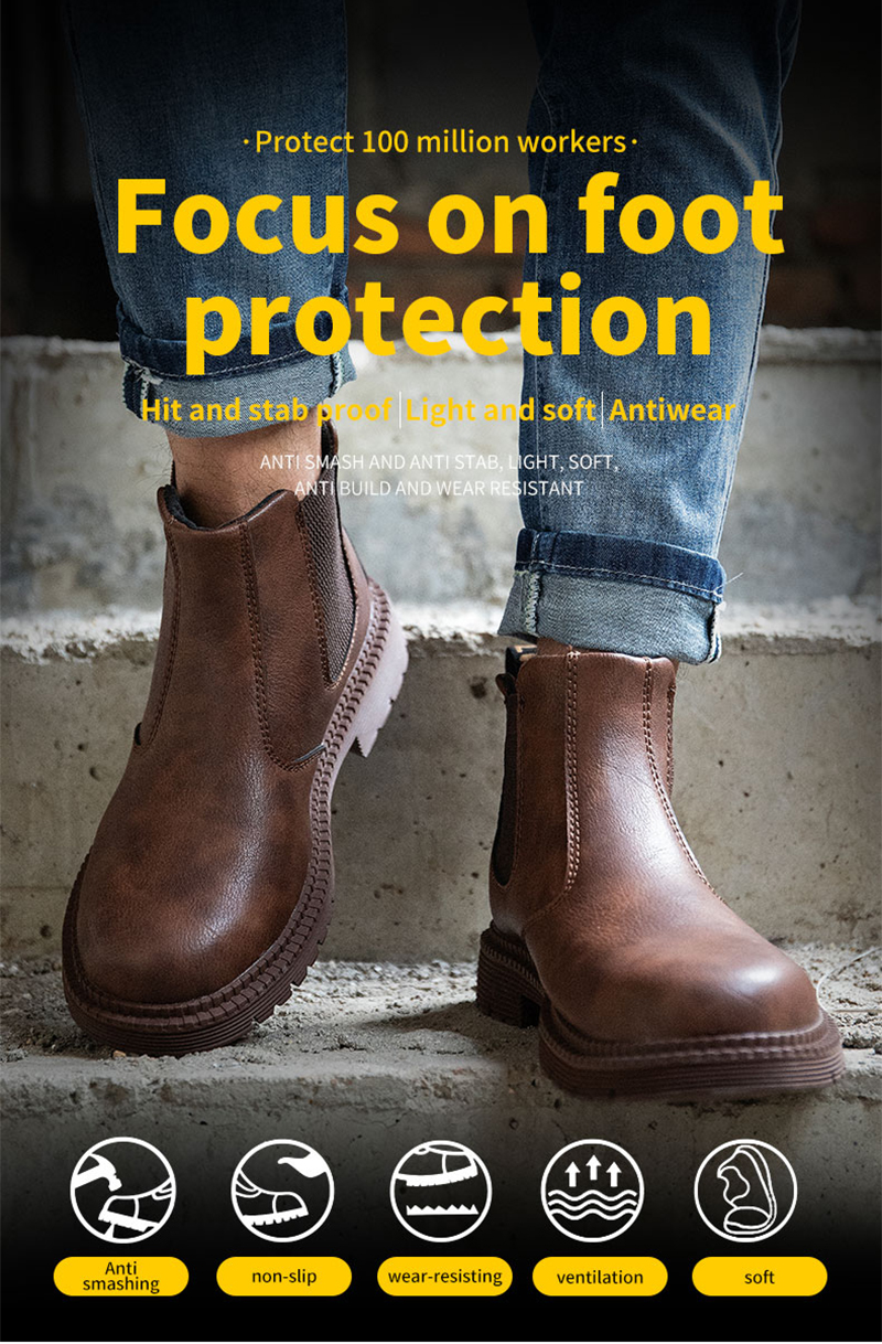 PU Leather Work Safety Boots Men's Chelsea Boots Men's Work Shoes Men's Winter Boots Men's Steel Toe Shoes